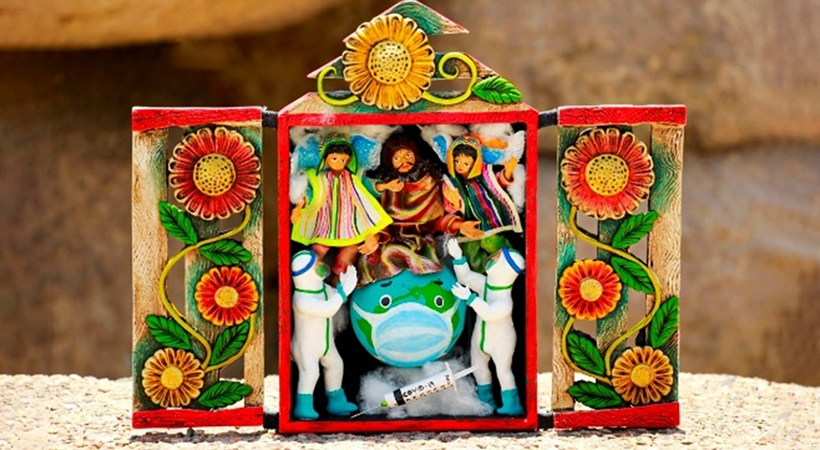 Un retablo hecho a mano en Huamanga, para adornos artesanales… el trabajo es todo natural con mucha perfección